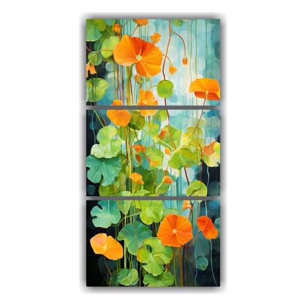 Exposición De Tres Cuadros Abstractos Detallados En Estilo Óleo De Hierbas Nasturtium