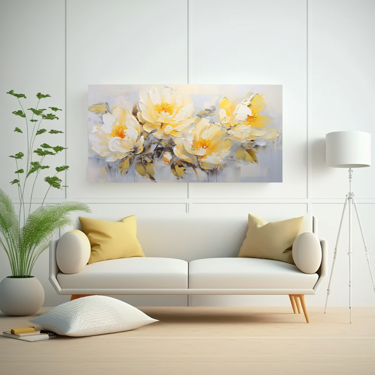 Exposición Inspiradora De Pintura En Lienzo Estilo Amarillo PEONÍAS