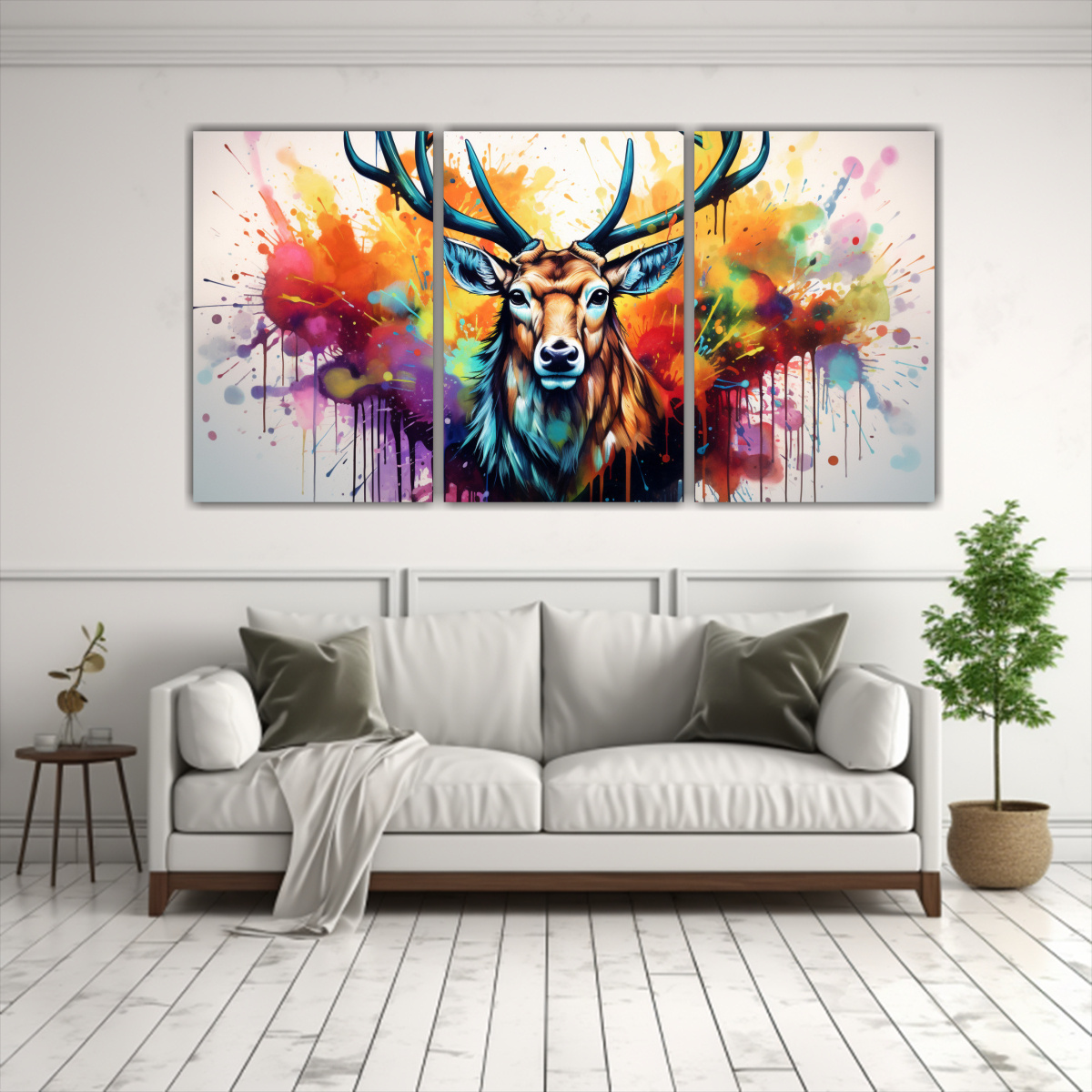 Exposición Tríptico Canvas Moderno Acuarelas Coloridas Estilo Pintura Elk