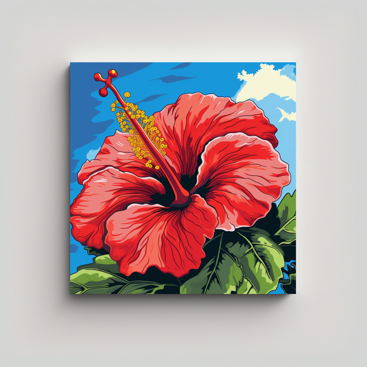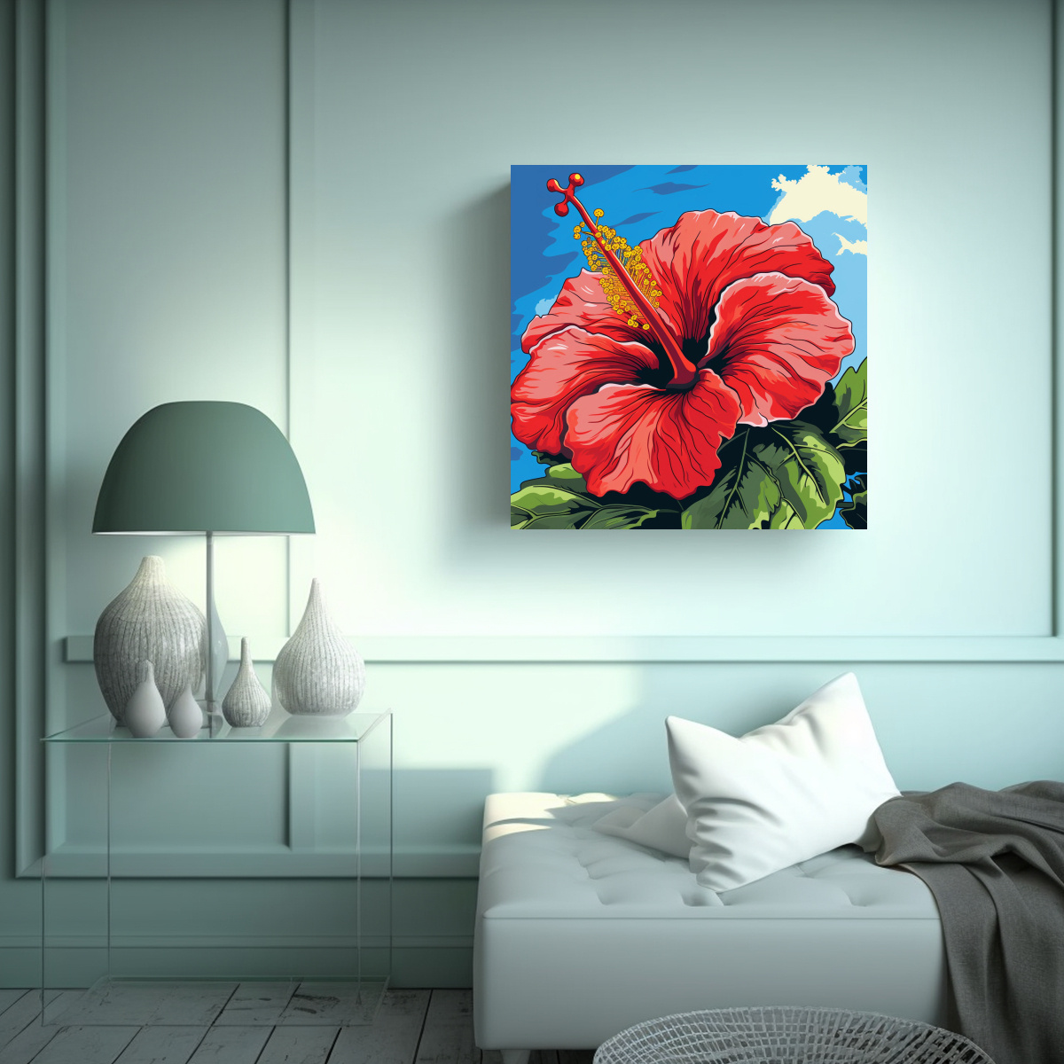 Exquisita Obra De Arte Hibiscus Pop Estilo Mural Decorativo