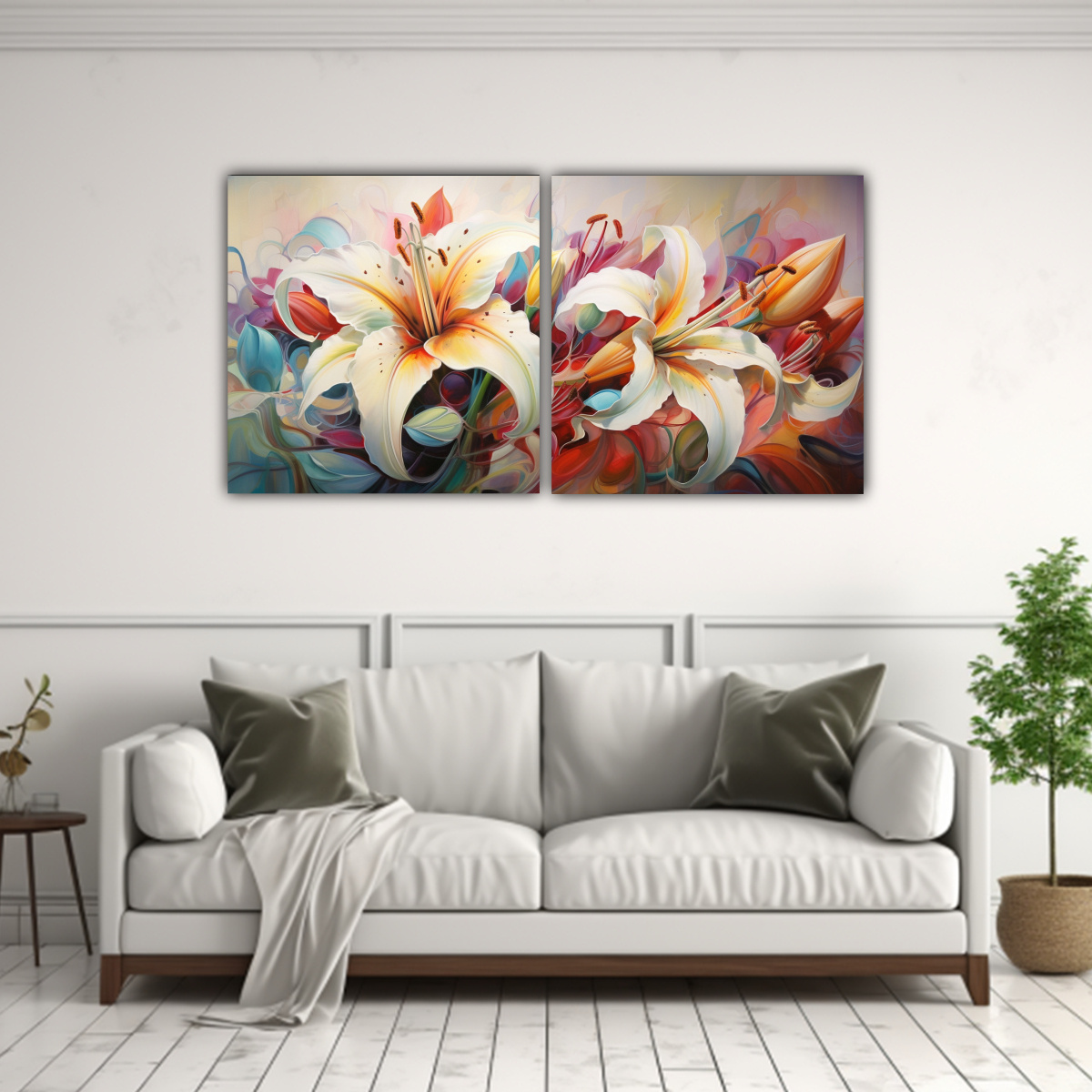 Flores Abstractas Modernas En Lienzo: Set De 2 Pinturas Fotográficas