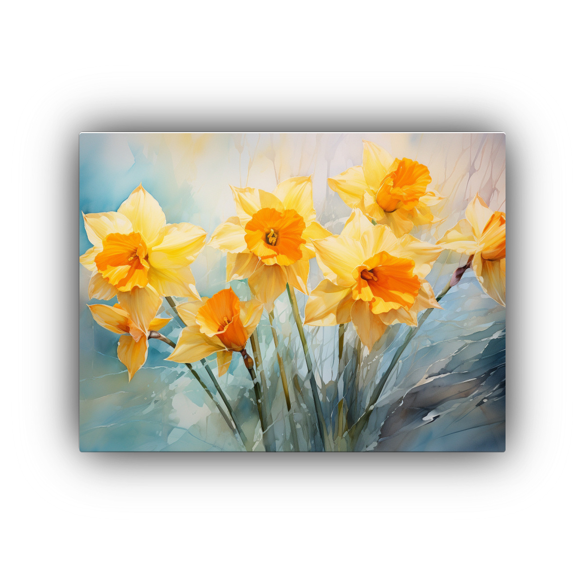 Flores De Narcisos Amarillos Y Naranjas En Pinturas Abstractas.