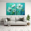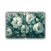 Flores En Tonos Verdes Y Turquesa En Pintura Sobre Lienzo.