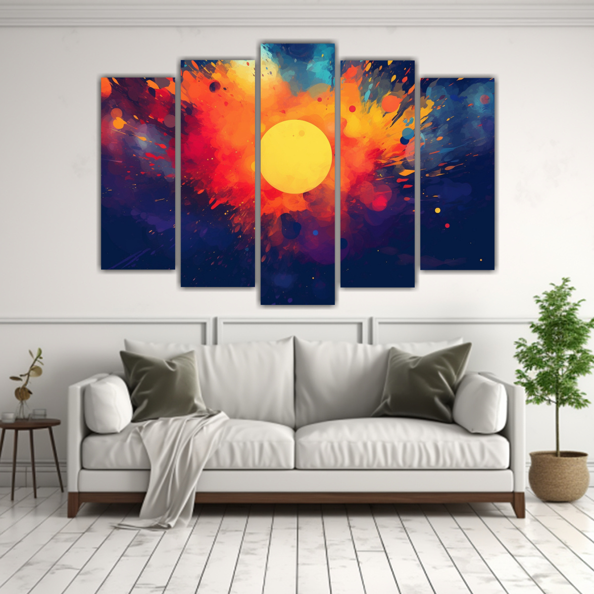Este cuadro se vería espectacular en un salón moderno o una oficina creativa Combínalo con muebles blancos o grises para resaltar su vibrante paleta de colores y crear un ambiente lleno de energía y estilo