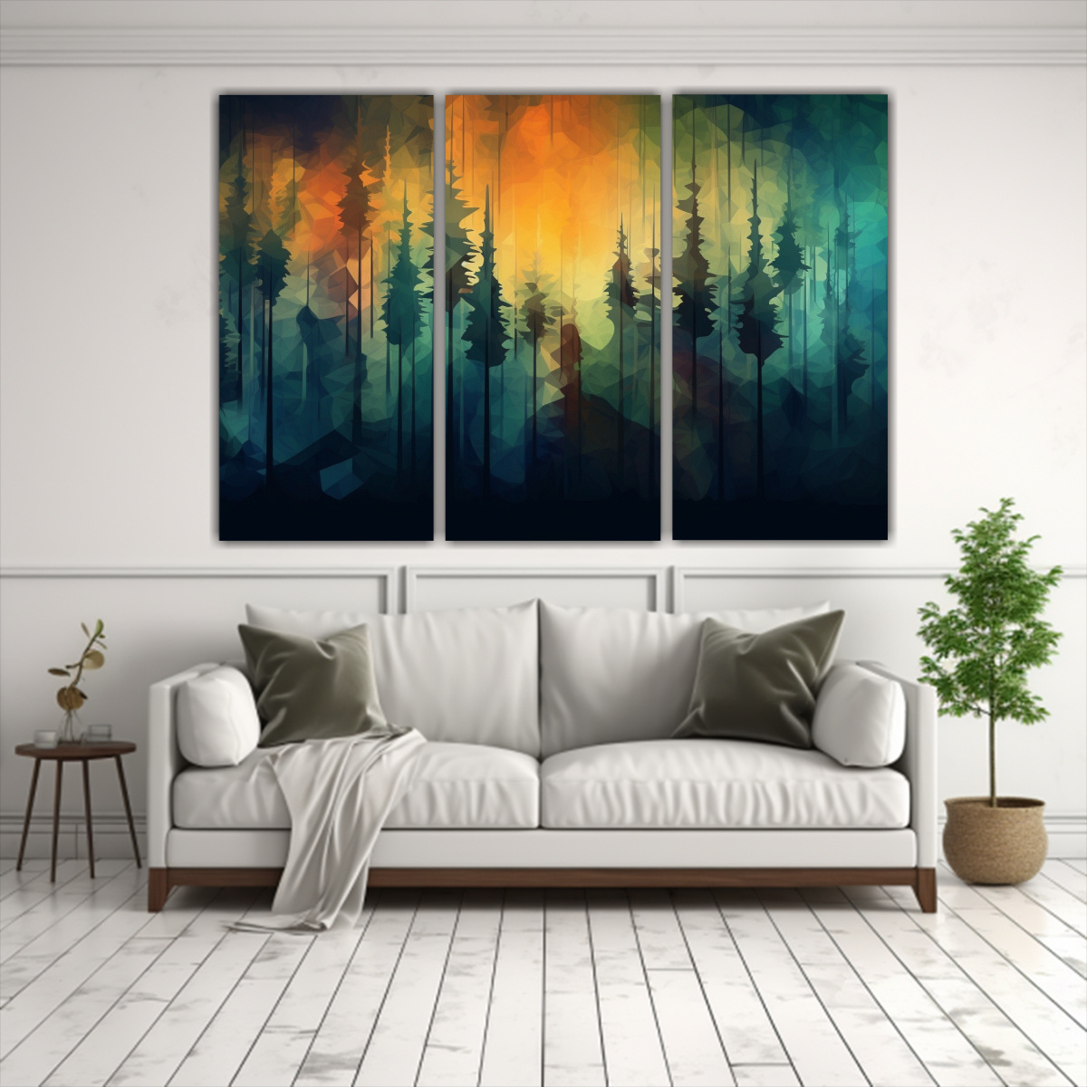 Este cuadro abstracto de bosque en lienzo moderno pop art sería ideal para decorar tu sala de estar Colócalo sobre un sofá gris para resaltar sus tonos azules y verdes, creando un ambiente moderno y relajante