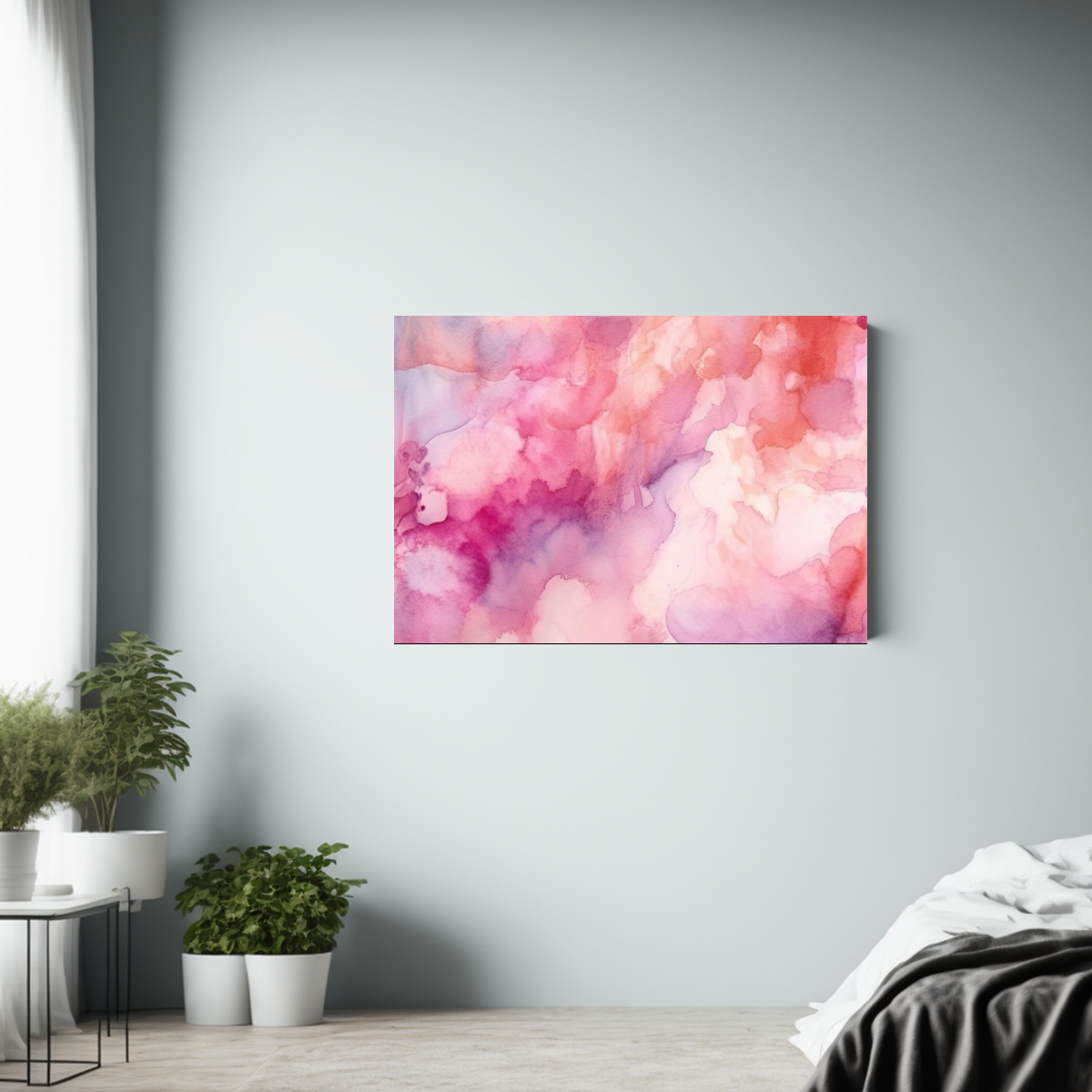Este cuadro Fondo Acuarela Rosa Abstracto es perfecto para decorar tu sala de estar sobre un sofá de color neutro, creando un contraste armonioso y aportando calidez Combínalo con cojines en tonos similares para un ambiente acogedor y moderno
