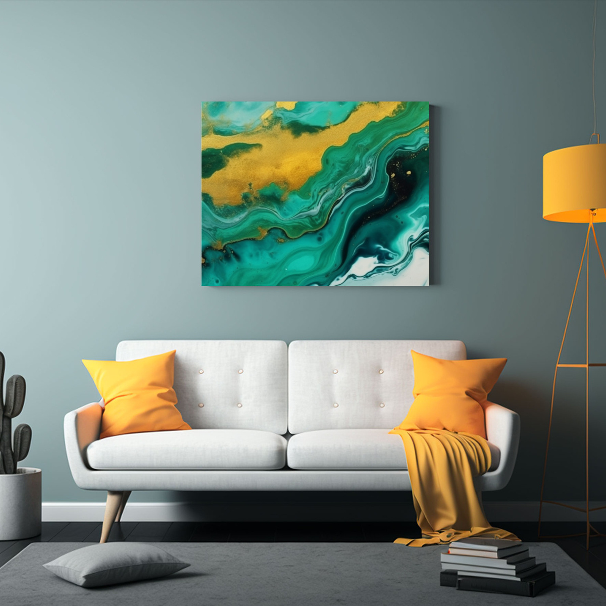 Lienzo colorido con tonalidades de turquesa, negro, menta, gris y azul marino grisáceo Expresa tu estilo con diseños exclusivos y entrega rápida y gratuita en Santiago Decora tu espacio con este cuadro y crea un ambiente moderno y fresco