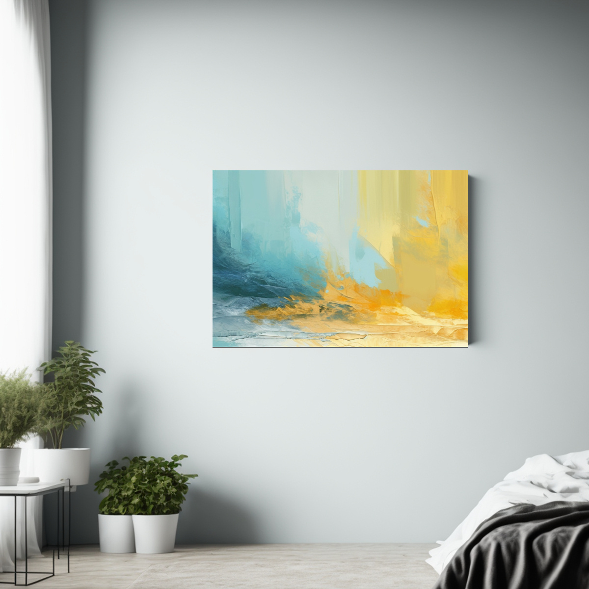 Renueva tus espacios con este moderno cuadro en tonos de azul claro con toques de plateado, menta, dorado y más Perfecto para cualquier ambiente
