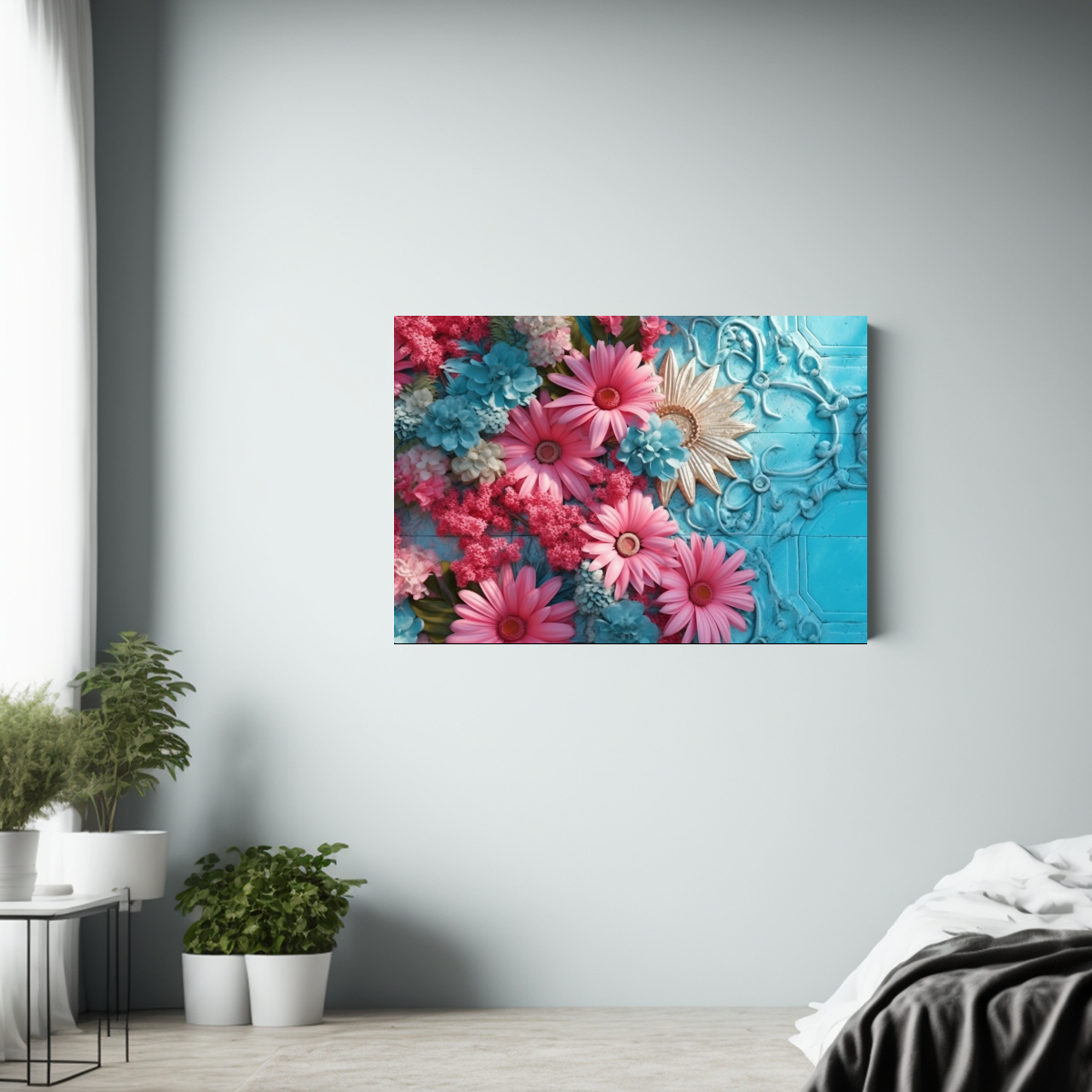 Este cuadro es perfecto para decorar tu sala de estar o tu estudio Colócalo en una pared blanca para resaltar sus colores vibrantes y crear un punto focal en la habitación Combínalo con cojines en tonos lila, menta y turquesa para un ambiente armonioso y moderno