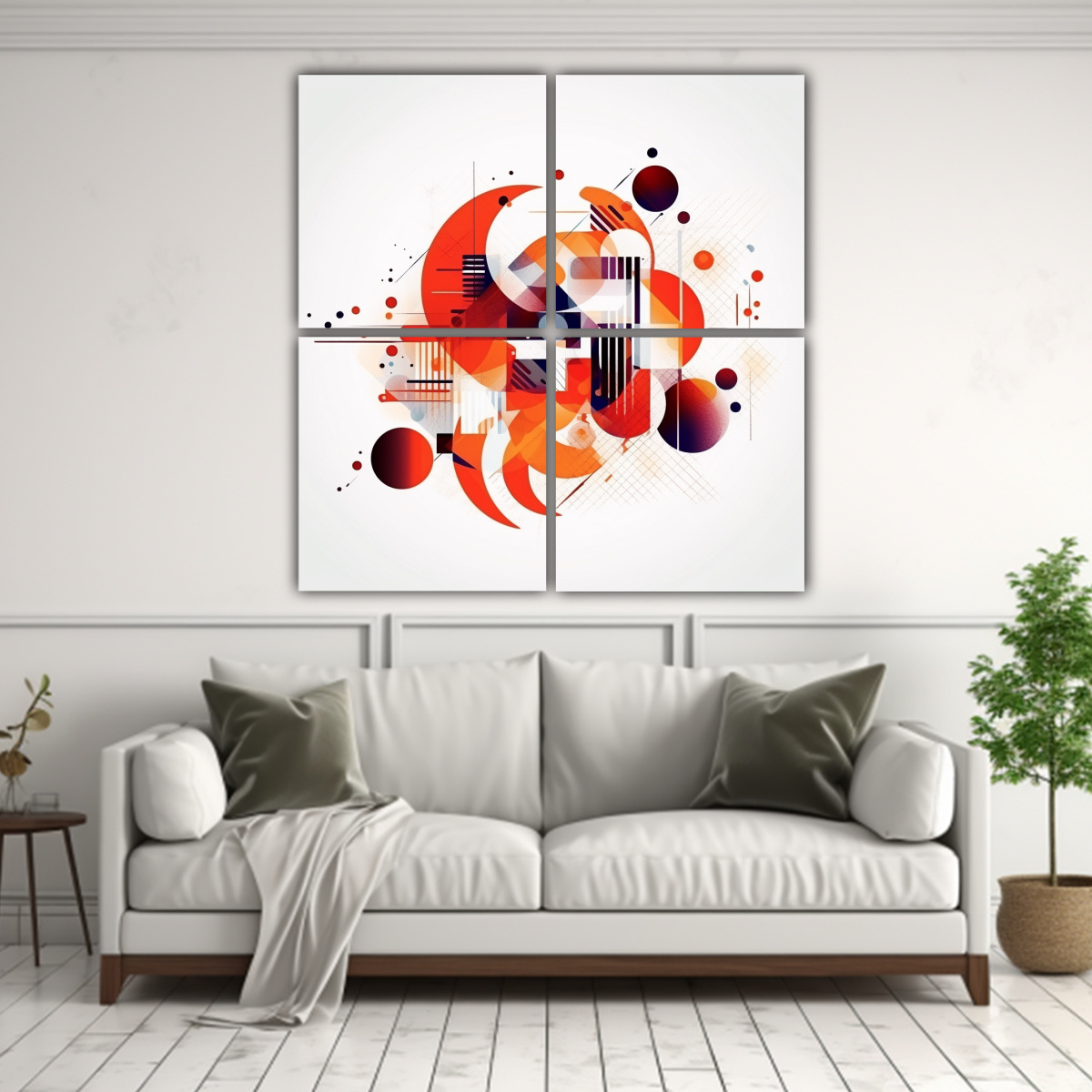 Fondo Geométrico Abstracto Con Colores Cuatro Canvas Finas Líneas Unica