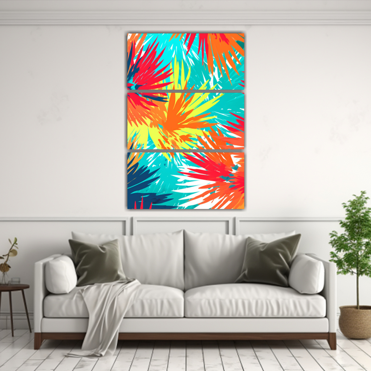 Este cuadro sería perfecto para decorar una sala de estar moderna Puedes colocarlo sobre un sofá de color neutro para que resalte aún más Complementa la decoración con cojines en tonos cian, coral y beige, y agrega plantas para darle un toque fresco ¡El resultado será un espacio vibrante y acogedor!