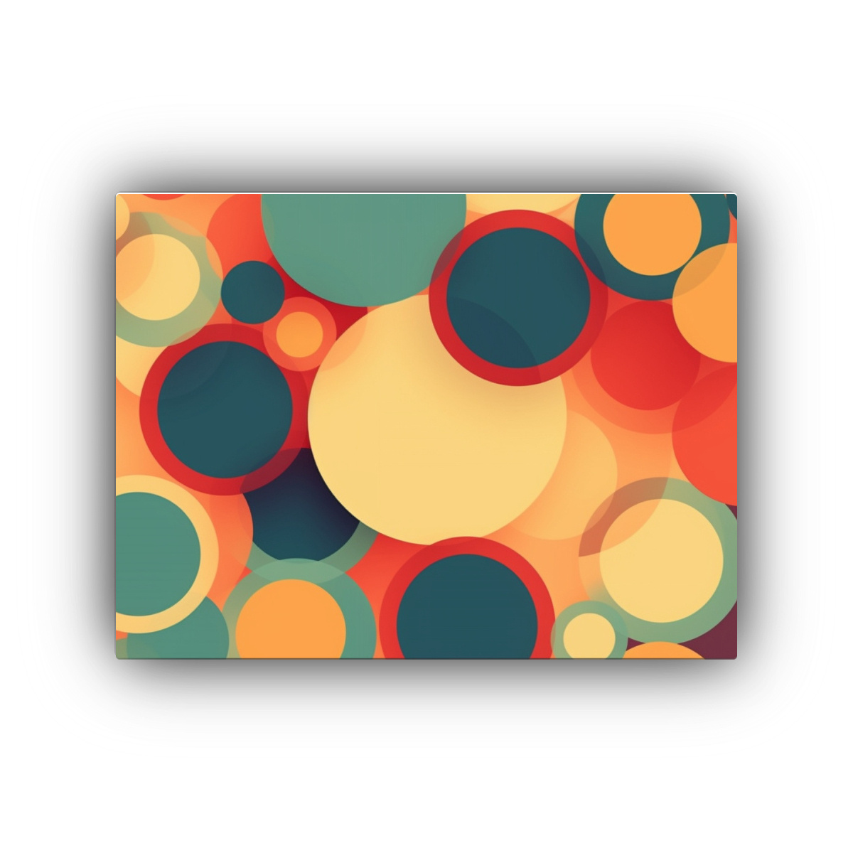 Renueva tu hogar con este lienzo de inspiración retro con círculos coloridos, perfecto para aportar un toque de originalidad y color a tus espacios Hazte con un diseño exclusivo y de calidad al mejor precio ¡Envíos express a regiones disponibles!