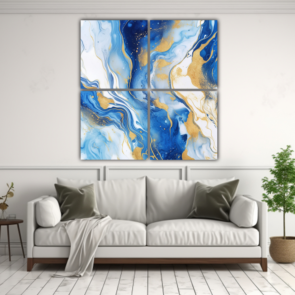 Si buscas un diseño sofisticado y elegante, coloca el cuadro Fondos acuarela azul y dorado en tu sala de estar Combina perfectamente con muebles en tonos neutros y aportará un toque de color y estilo a tu espacio de reunión y descanso