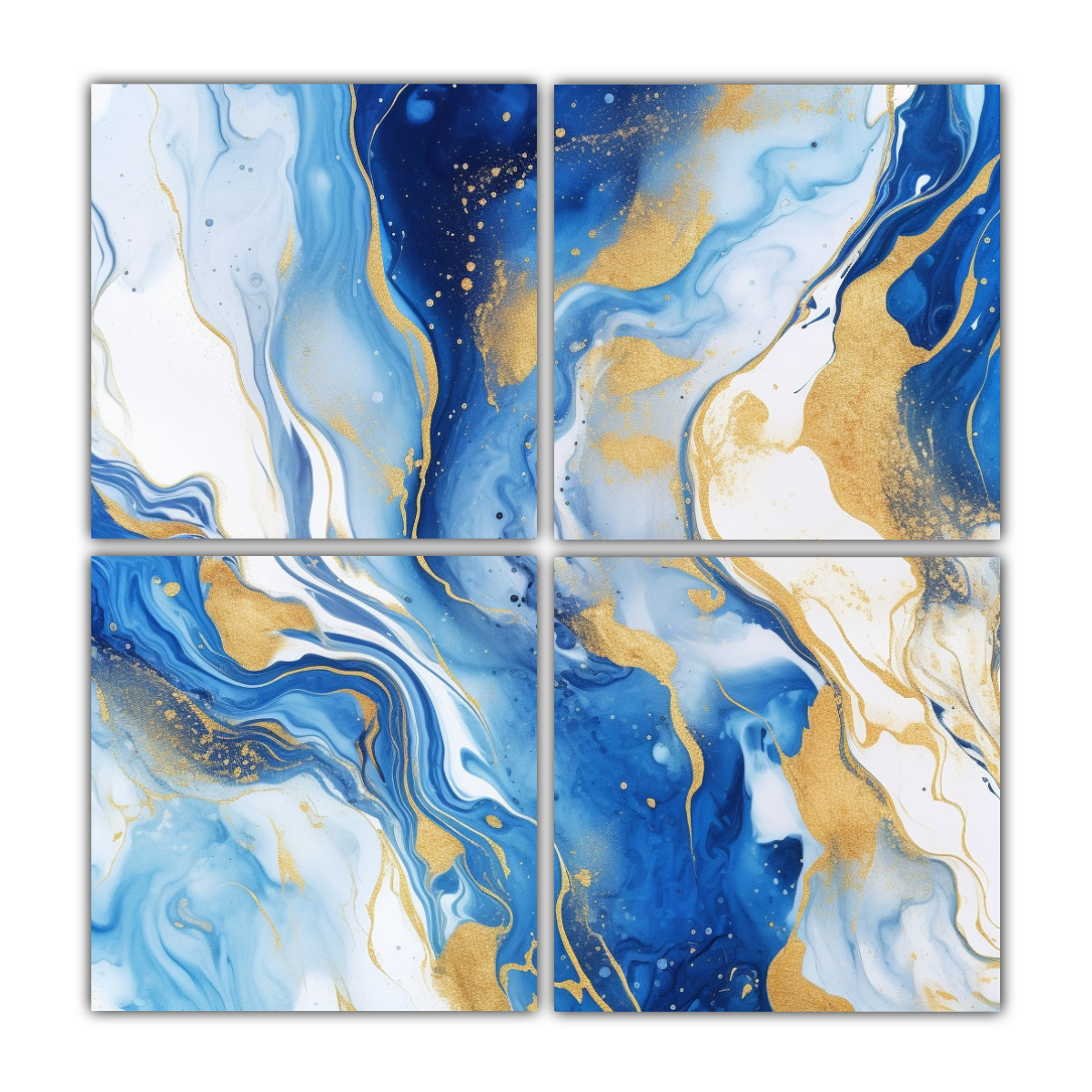 Fondos Acuarela Azul Y Dorado, Mármol Líquido, Pinturas Decorativas De Lienzo