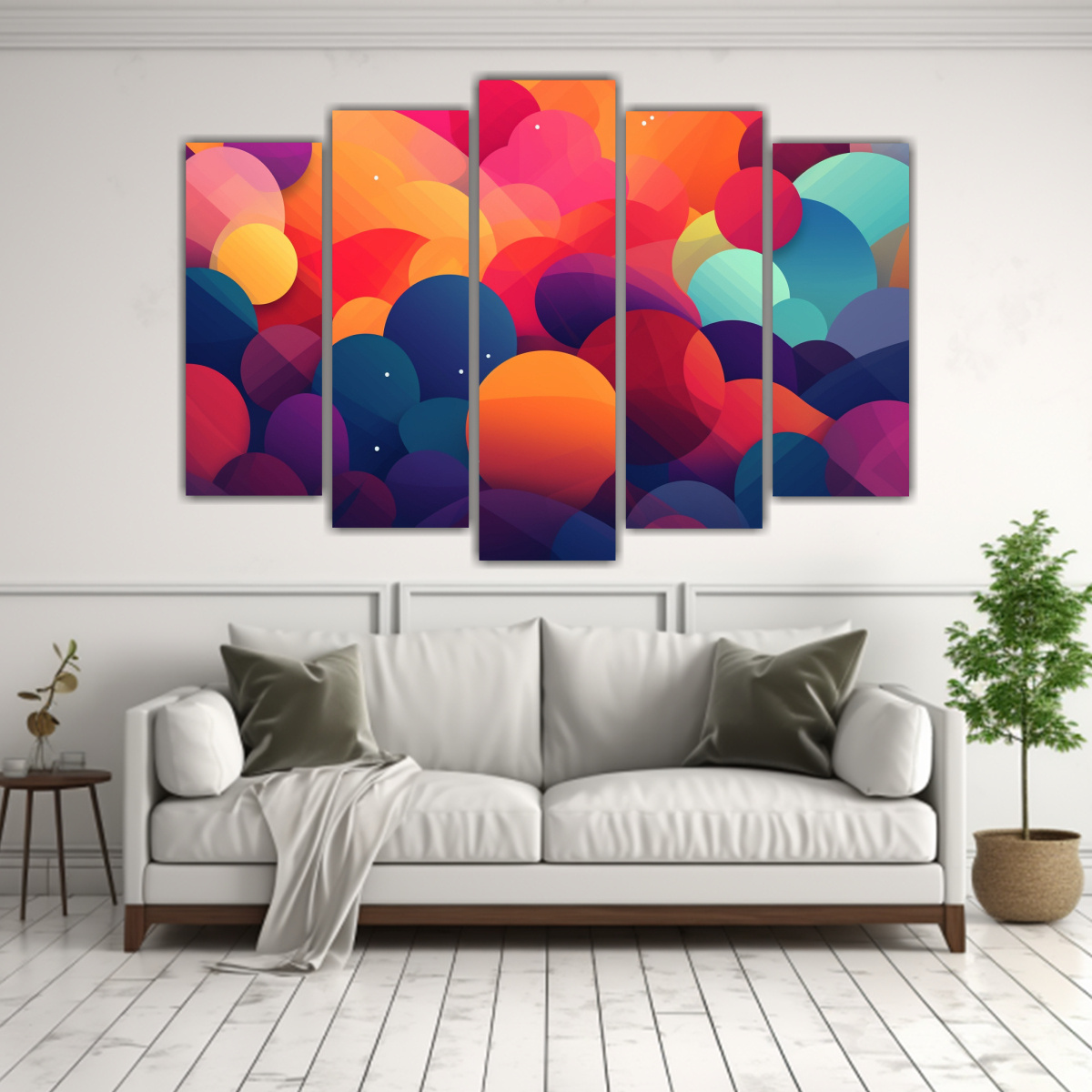 Este cuadro de Fondos coloridos con diseño simple sería ideal para decorar una sala de estar moderna o un dormitorio juvenil Combínalo con muebles en tonos neutros para resaltar su vibrante paleta de colores y añadir un toque de frescura a tu ambiente