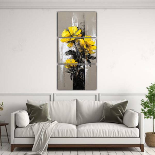 Formación De Pared Creativa: Pintura De Flores Amarillas Y Negras En Lienzo