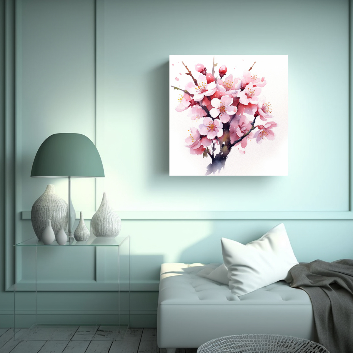 Fotografía De Cerezos En Acuarela Estilo Bastidor: Decoración Dinámica