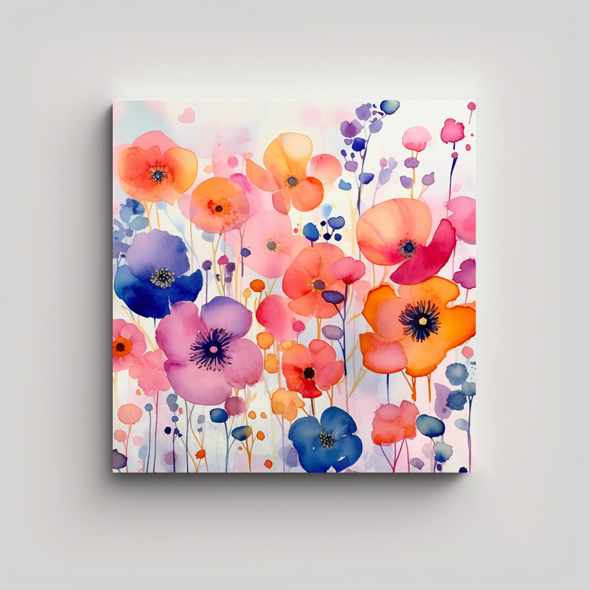 Fotografía Lienzo Tela Modernidad Acuarela Floral Vivos Colores