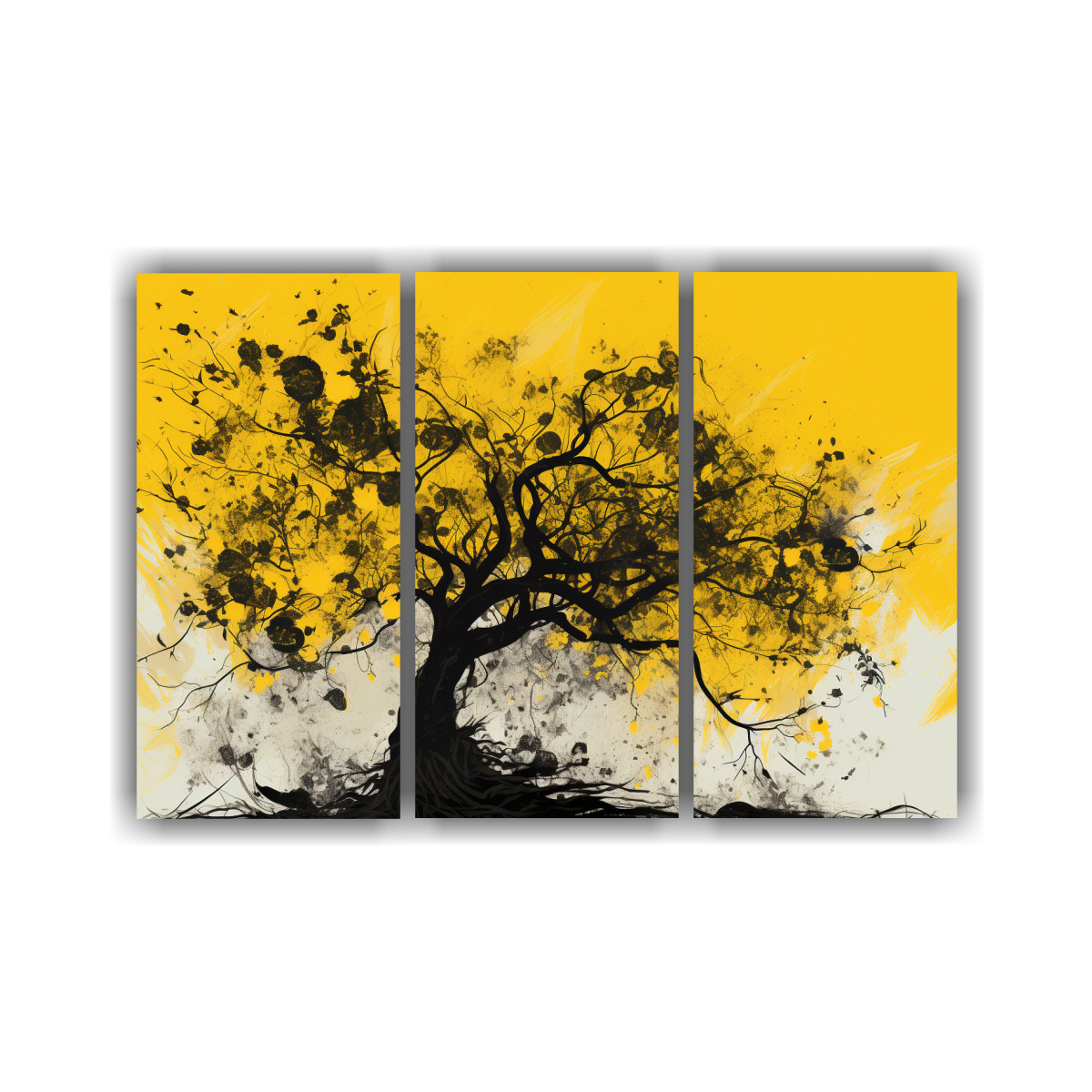 Este cuadro se vería espectacular en la sala de estar, sobre un sofá de color neutro para resaltar los tonos amarillos y negros Complementa con cojines en tonos dorados y plateados para lograr un ambiente elegante y moderno