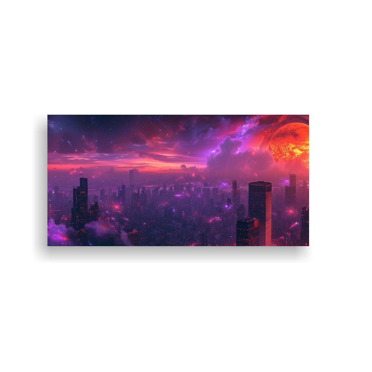 Transforma tu espacio con esta impactante composición de alta resolución que captura la esencia de una ciudad distópica Ideal para decorar salas de estar, oficinas o dormitorios modernos Aporta un toque futurista y misterioso a tu ambiente
