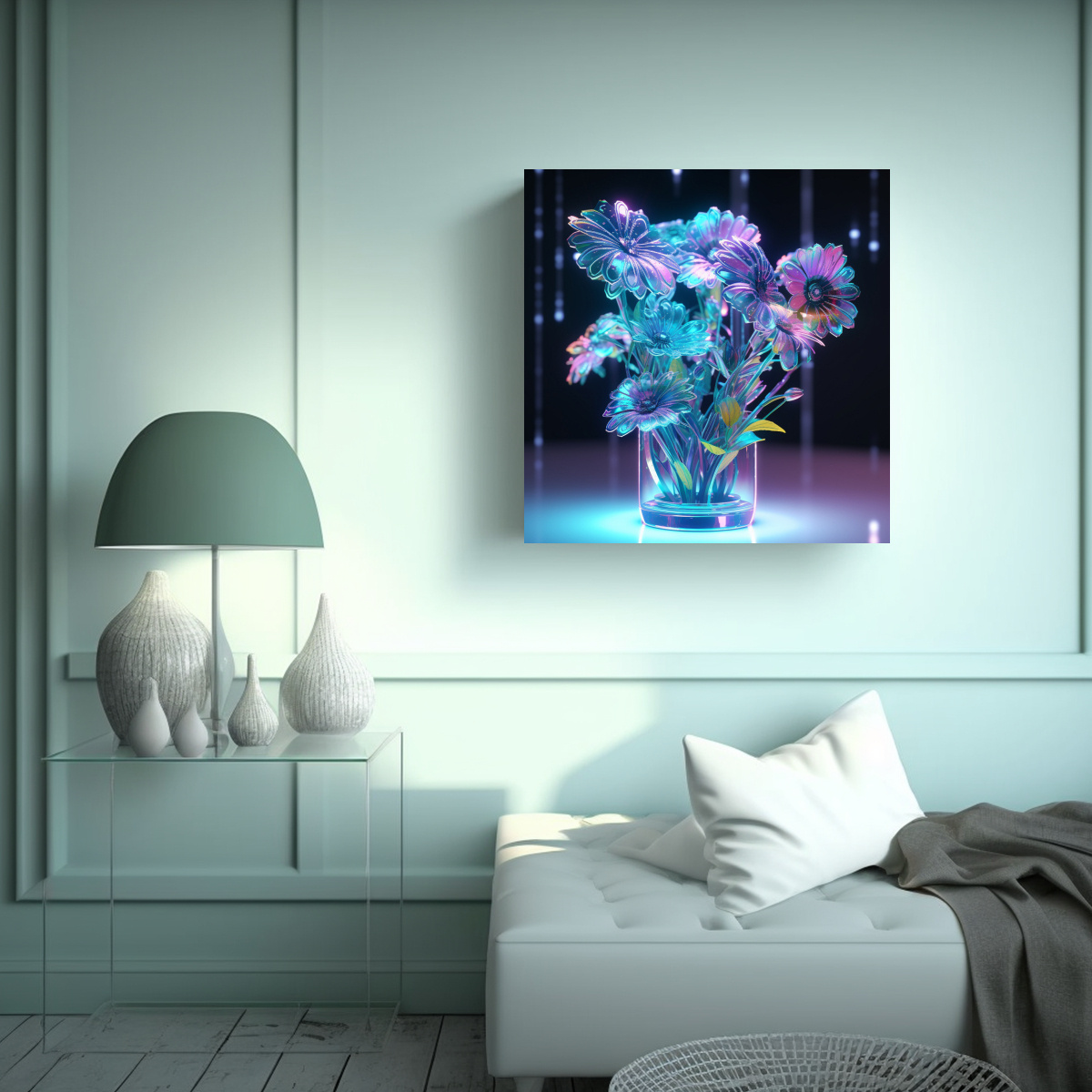 Futuristas Flores Digitales Diseño Tela En Bastidor Calidos Plantas