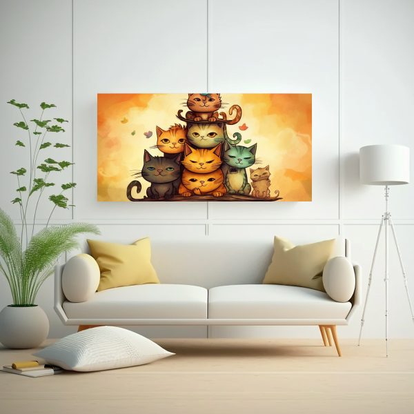Gatos En Colores Sobre Montón Mirando Al Frente: Pinturas De Decoración