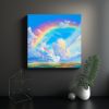 Decora tu sala de estar, dormitorio o incluso la oficina con este hermoso cuadro que refleja la tranquilidad de un cielo azul y un arcoíris Detalles en plateado, turquesa, gris, lila, verde azulado y cian