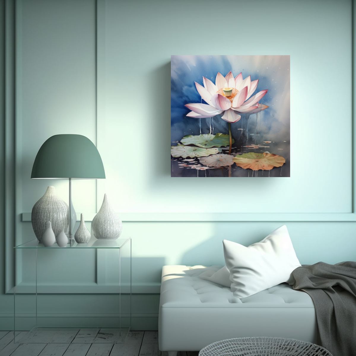 Ilustración Detallada De Loto En Acuarela – Cuadro Decorativo Canva
