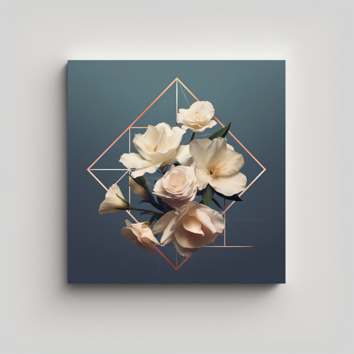 Ilustración Geométrica Floral En Bastidor Para Comedor – Estilo Romántico Moderno