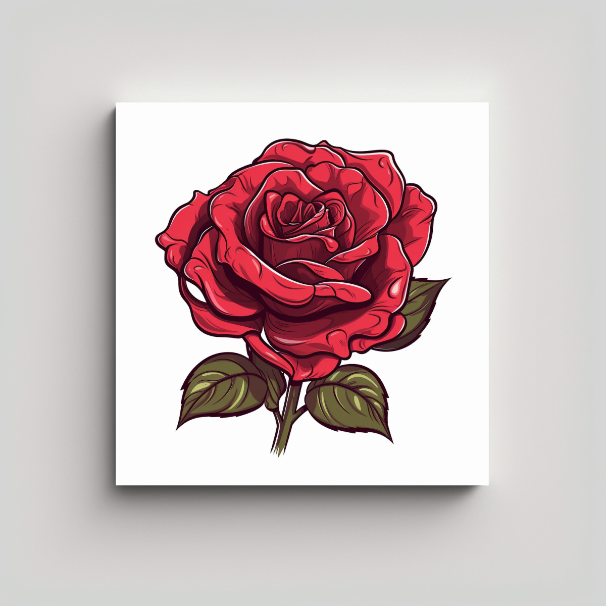 Ilustración Rosa Roja Fantasia Arte Cuadrado Aislado Blanco