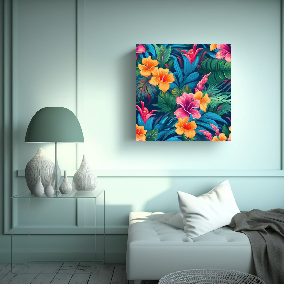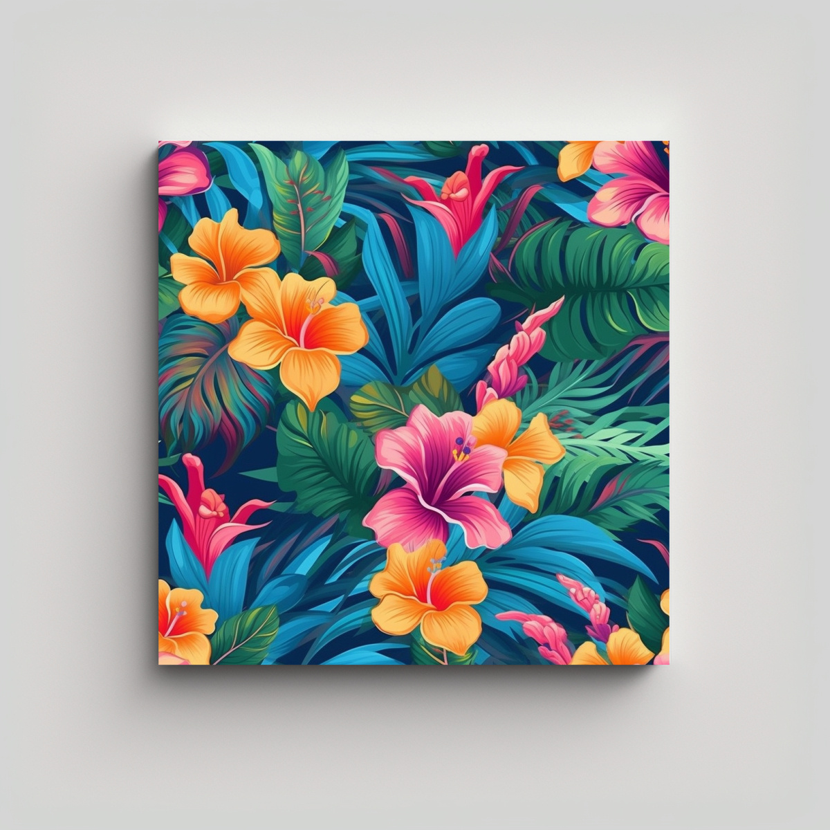 Agrega un toque de estilo tropical a tu sala de estar, dormitorio o estudio con el Cuadro Tropical Lienzo Flores Este diseño exclusivo de DecoCuadros combina colores vibrantes y patrones únicos para crear una composición espectacular Las flores tropicales, representadas en un patrón creado en Adobe Illustrator, añadirán personalidad y frescura a cualquier ambiente La calidad de nuestros cuadros, impresos en tela de alta calidad y montados en bastidores de madera, garantiza una durabilidad excepcional Aprovecha nuestros precios económicos y la entrega rápida y gratuita en Santiago para llevar este cuadro único a tu hogar