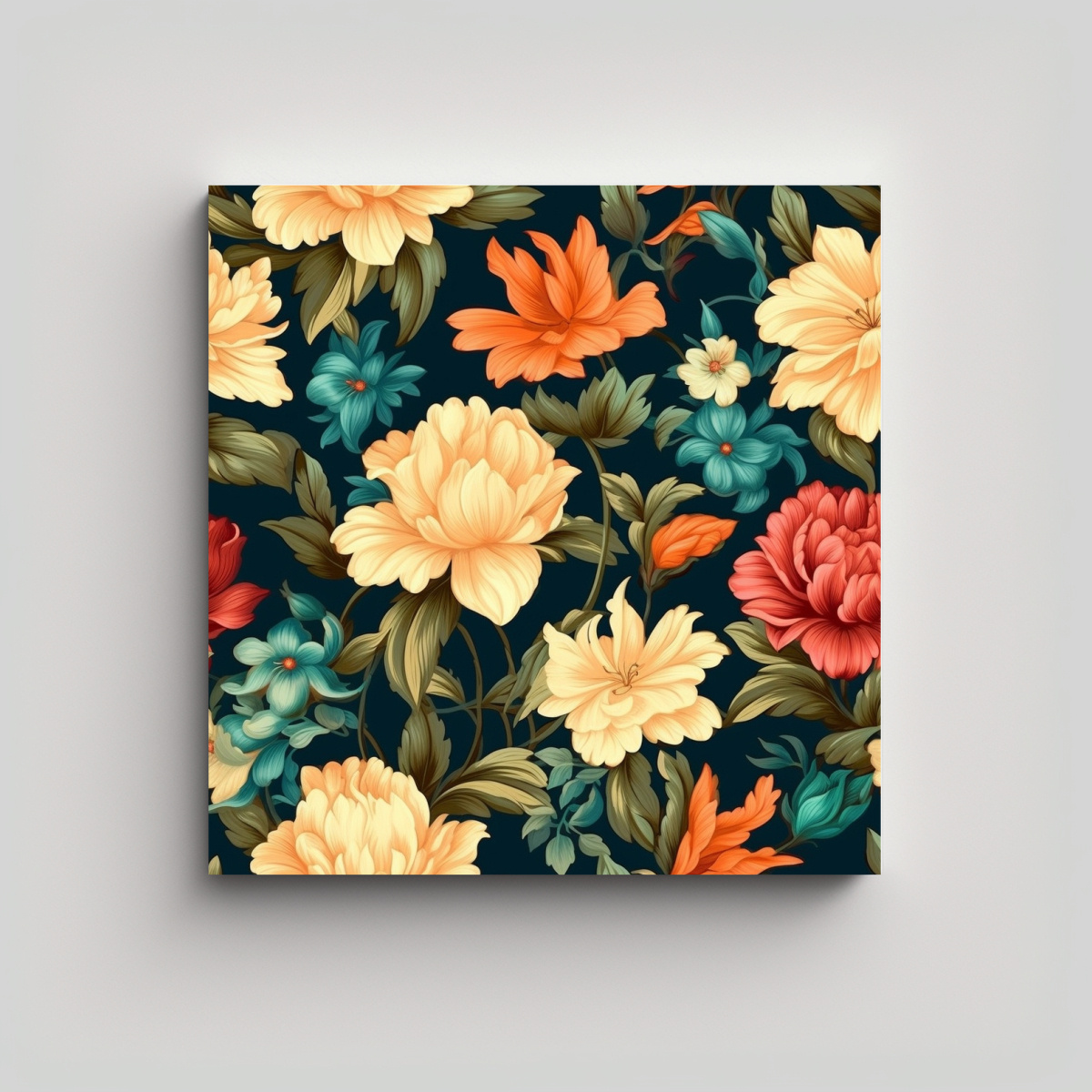 Ilustración Vintage De Flores Y Abstracción En Canva Para Comedor