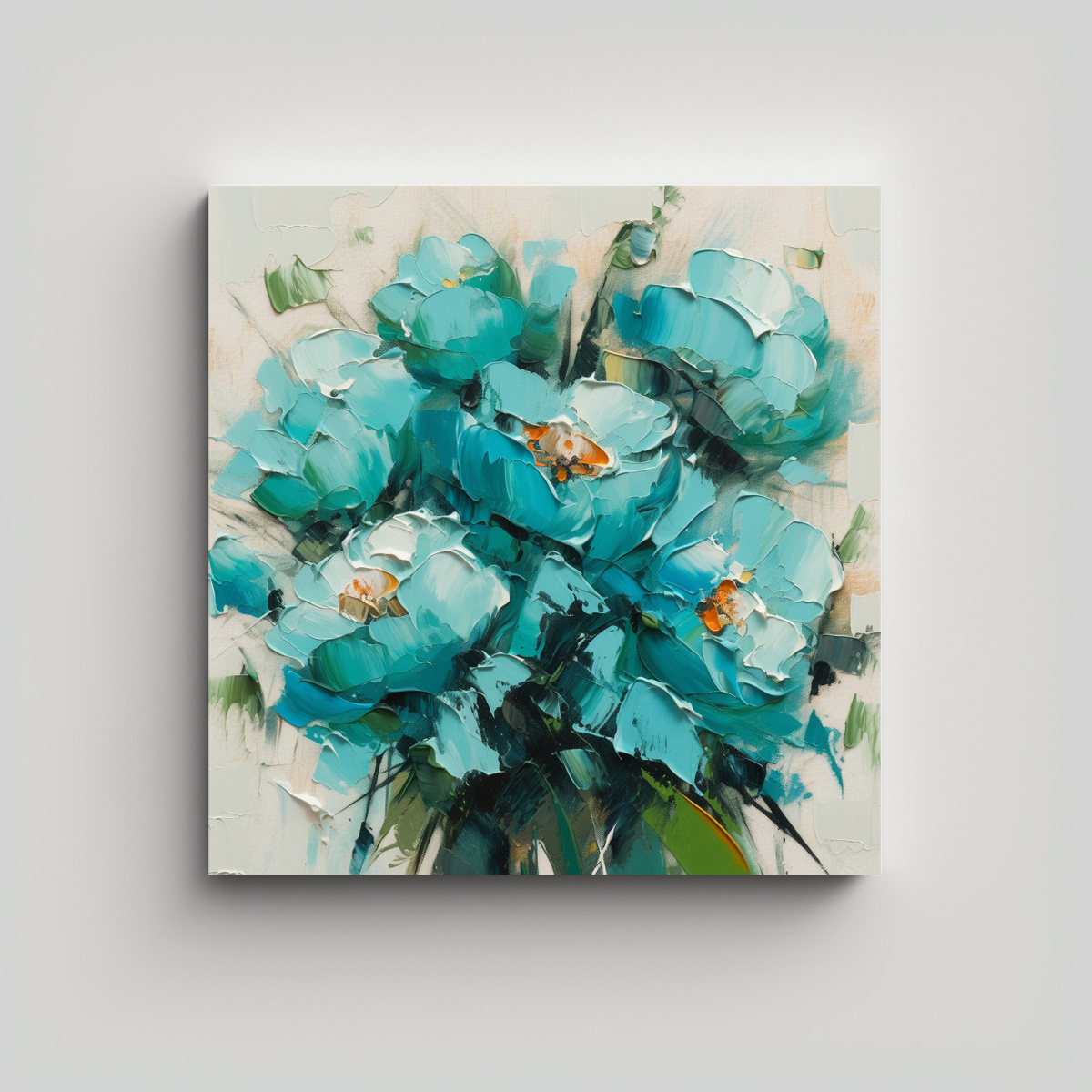 Imagen De Flores En Lienzo Estilo Galería Pintura Turquesa