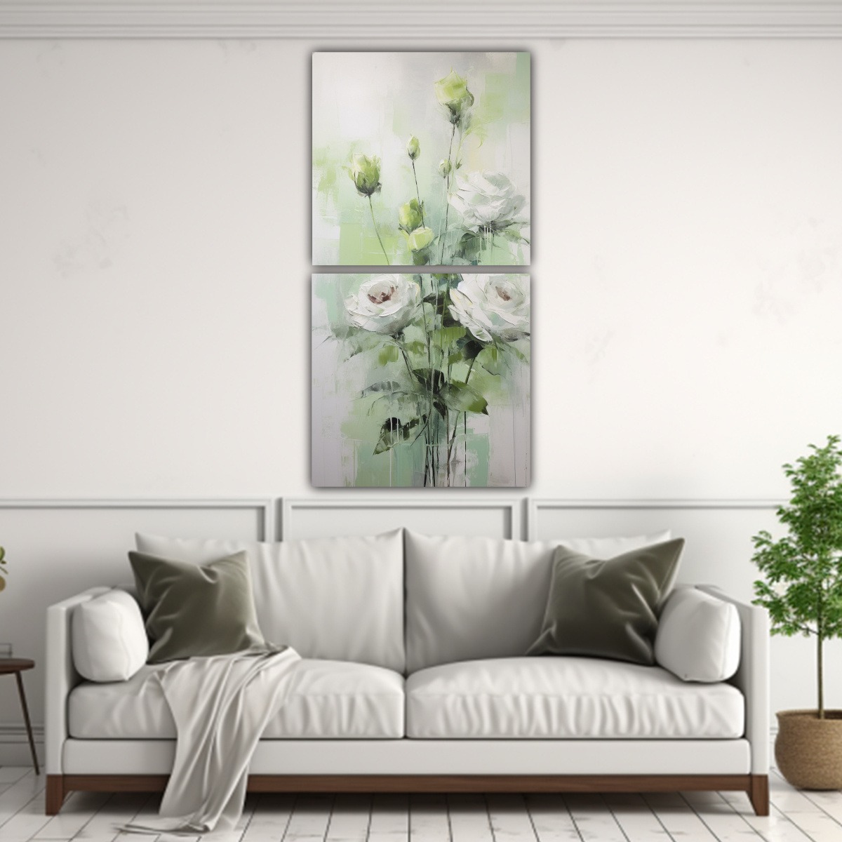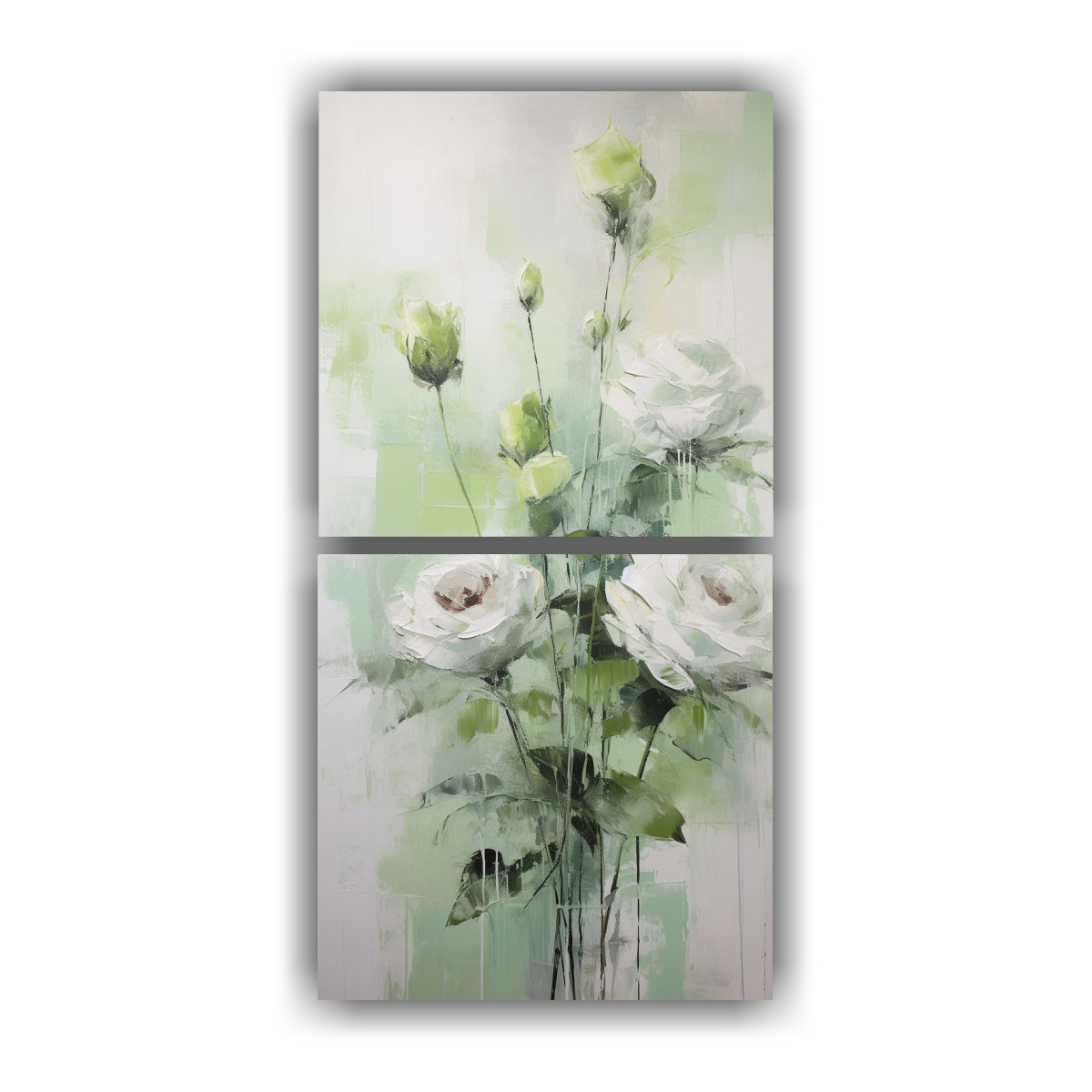 Imagen Full Color De Rosas Verdes En Lienzo En El Estilo De Dos Artes De Pared