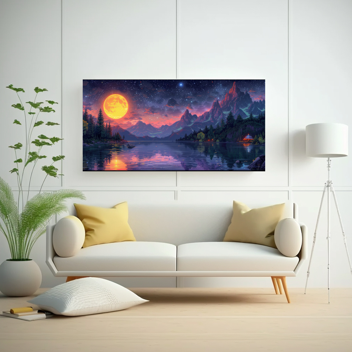 Este cuadro se vería increíble en una sala de estar junto a muebles de colores neutros como blanco y gris, creando un contraste elegante y moderno También puede destacar en una oficina con estilo industrial para añadir profundidad y personalidad al ambiente