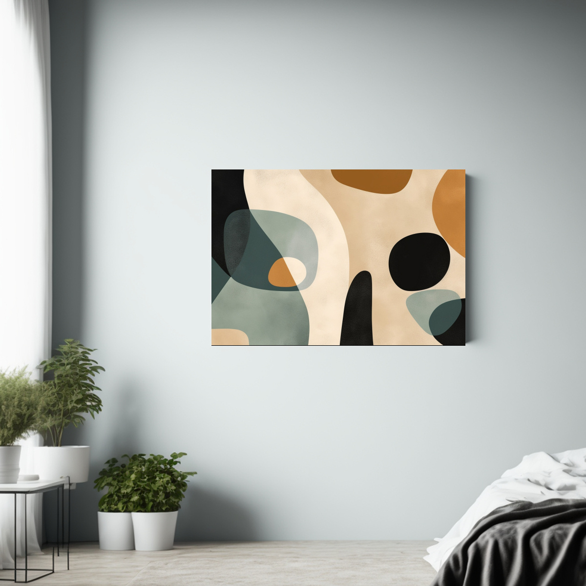 Este cuadro abstracto en negro, marrón y beige sería perfecto para aportar elegancia y modernidad a tu sala de estar Colócalo sobre un sofá gris para resaltar sus tonos y crear un ambiente sofisticado