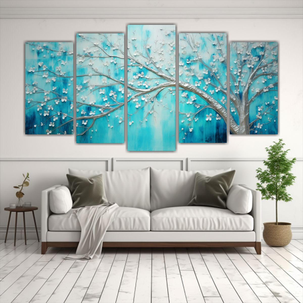 Impresión De Arte De Pared En Turquesa Y Plata En Estilo Cinco