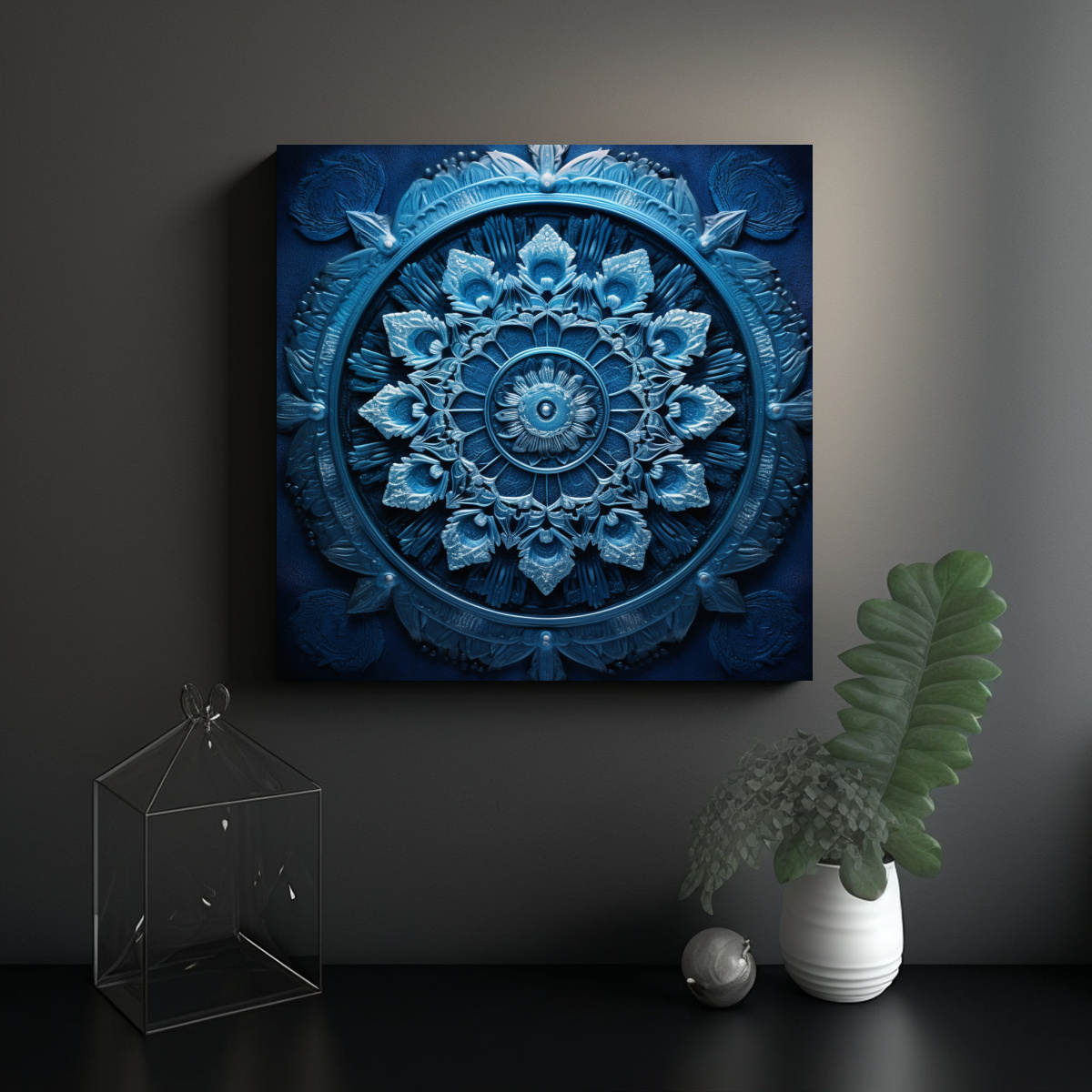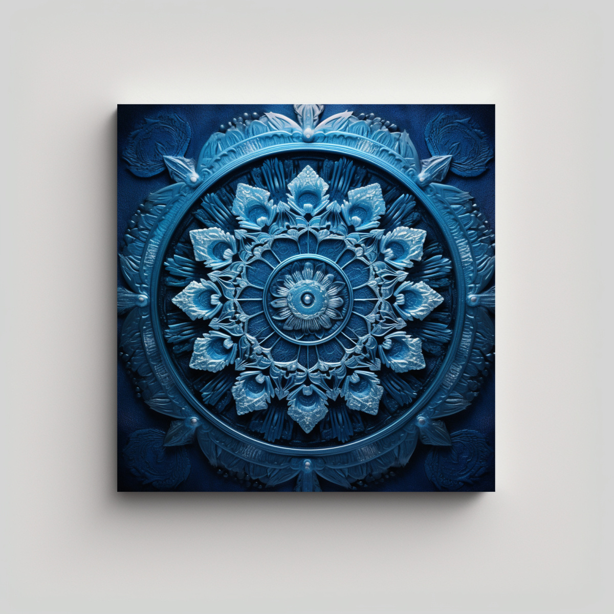 Coloca este cuadro mandala azul en tu sala de estar para crear un ambiente relajante y armonioso Combínalo con cojines en tonos grises y muebles de madera clara para un estilo moderno y sofisticado