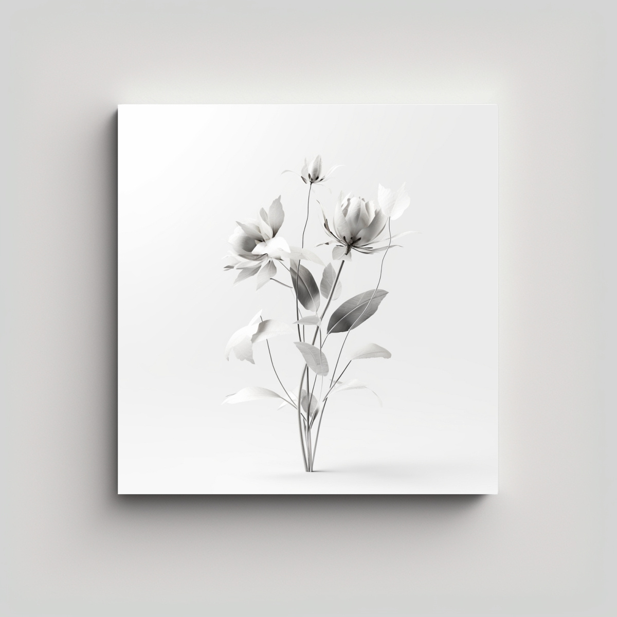 Impresionante Tela En Bastidor: Diseño Floral Minimalista Y Estético En Blanco