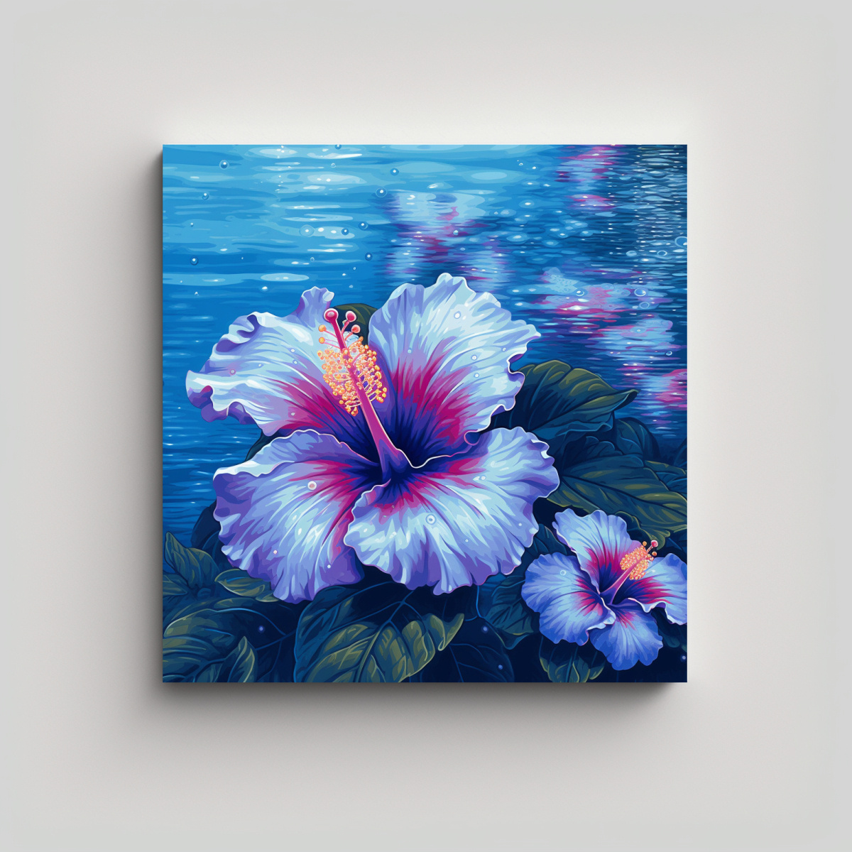 Inspiración De Arte Pixel: Lienzo Diseño Blue Hibiscus Sobre Agua