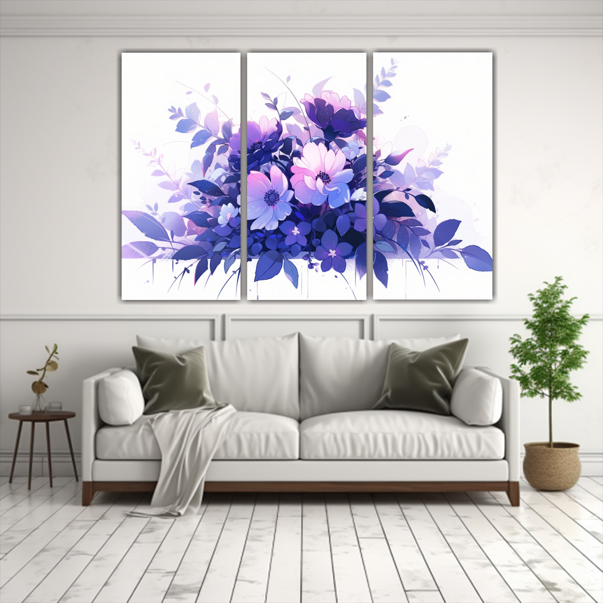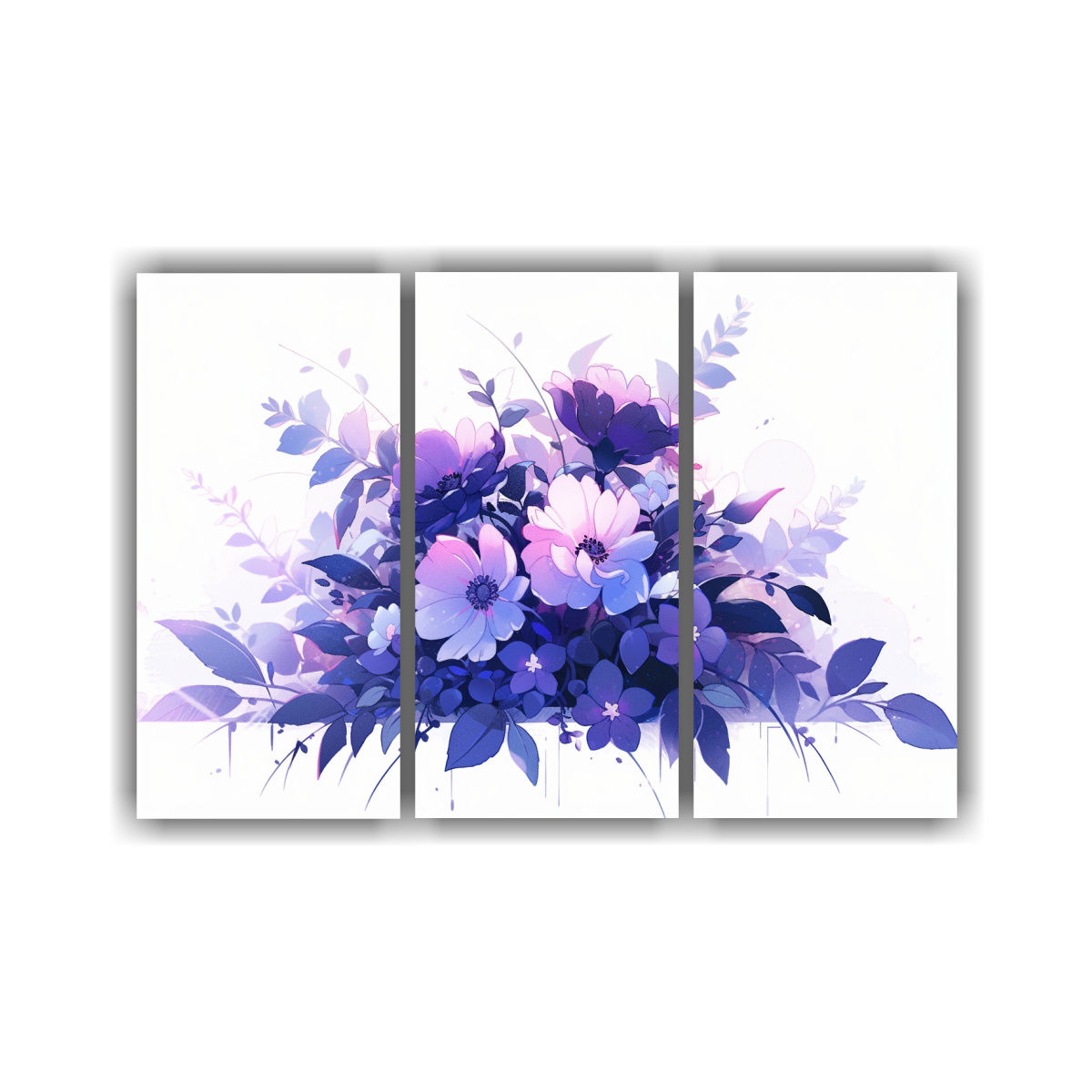 Para realzar la belleza de estos cuadros, te recomendamos colocarlos en un espacio con paredes blancas o grises para que resalten los tonos púrpuras y neonoir Ideal para salas de estar con muebles minimalistas o habitaciones con estilo contemporáneo ¡Crea un ambiente único y elegante con este Set de 3 Cuadros!