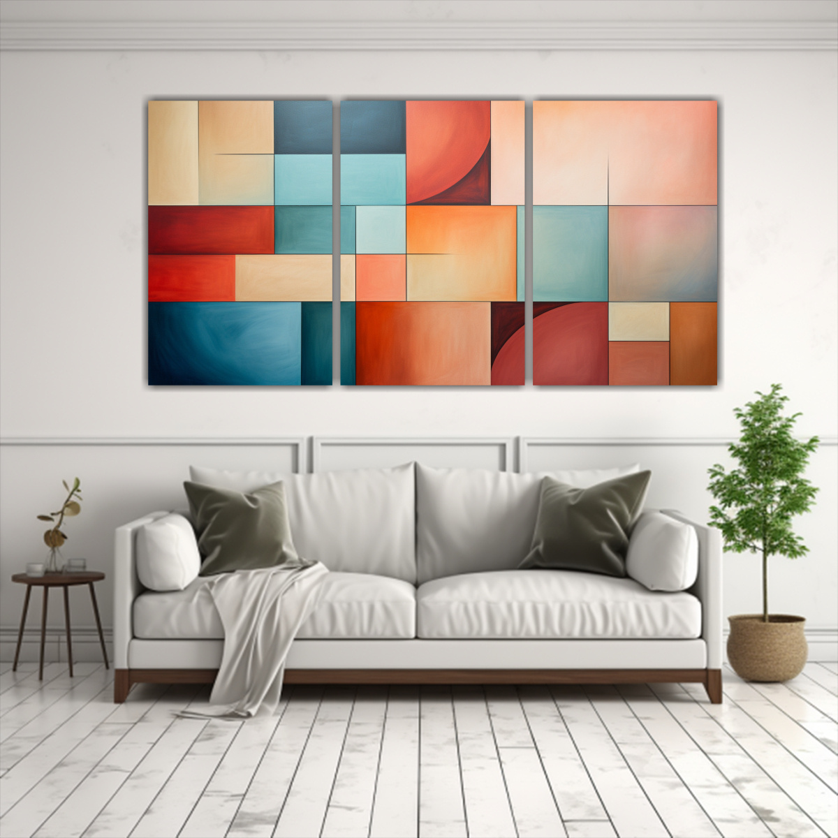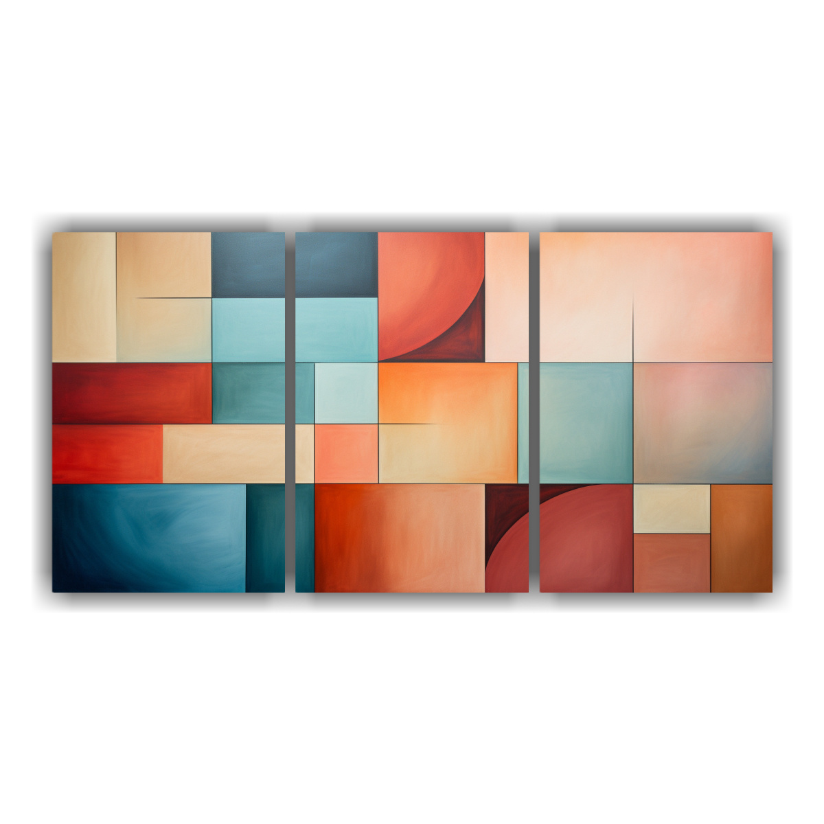 Juego 3 Telas Bastidor Tonos Brillante Geométrico NY Colores Relajantes Medio So