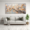 Este juego de 3 lienzos de tela de flores de cerezo naranja lucirá perfecto en tu sala de estar Te recomendamos colocarlos sobre un sofá en tonos neutros para crear un contraste elegante Además, puedes combinarlos con cojines en los colores azul marino grisaceo, plateado, coral, gris y beige para lograr una armonía visual ¡Añade un toque de naturaleza y sofisticación a tu hogar con estos cuadros decorativos exclusivos de nuestra tienda!