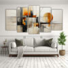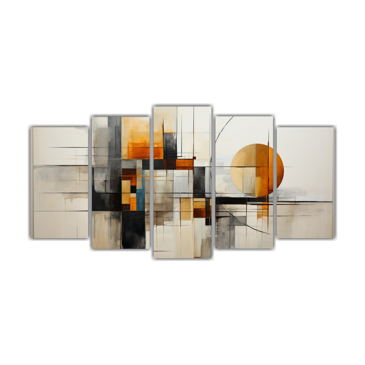 Juego De 5 Cuadros Conceptuales De Estética Geométrica Abstracta En Colores Neutros