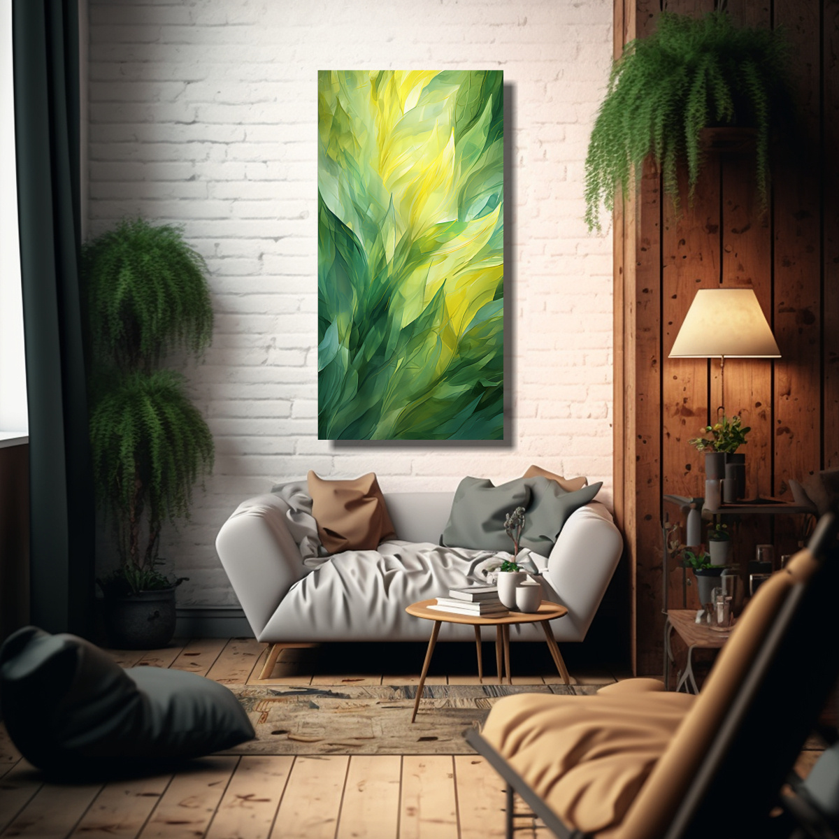 Lienzo Abstracción Gama De Colores Hojas De Acuarela En Verde Y Fantasía Decoración Pinturas
