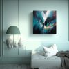 Este lienzo abstracto en tonos azul marino, grisaceo, plateado, menta, turquesa, verde azulado, carmesí, gris y coral es perfecto para decorar tu sala de estar Combínalo con muebles en tonos neutros como blanco, gris o beige, y agrega cojines en colores coordinados para lograr un ambiente moderno y sofisticado