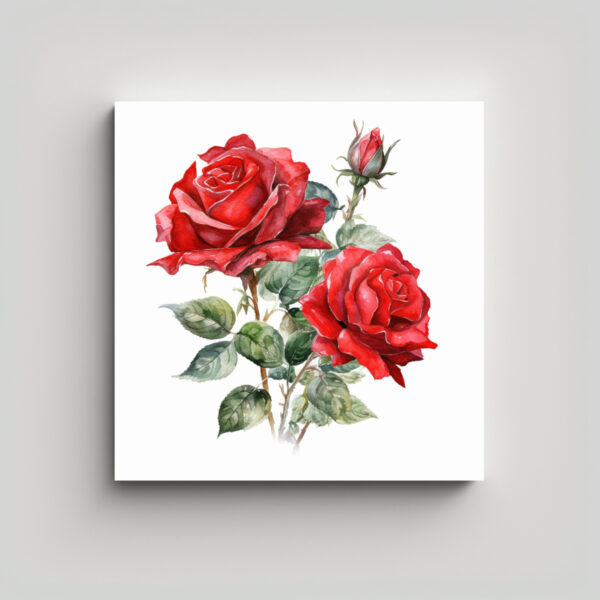 Lienzo Acuarela De Rosas Rojas Clásicas Fondo Blanco Alta Definición