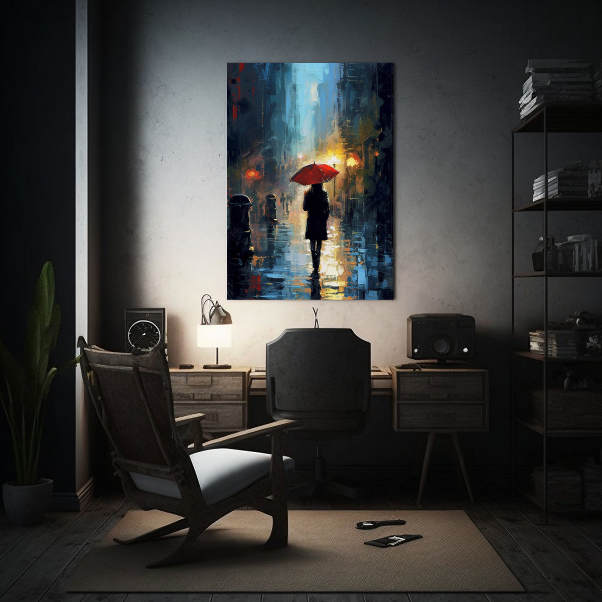 Decora tu oficina con este lienzo cálido de estilo cinematográfico y emocional oscuro Colores como el azul marino grisaceo, el plateado, el turquesa, el gris, el coral y el carmesí se combinan en esta impresión de alta calidad Diseño exclusivo y envío rápido y gratuito en Santiago ¡Aprovecha nuestros precios económicos y dale un toque especial a tu espacio de trabajo!