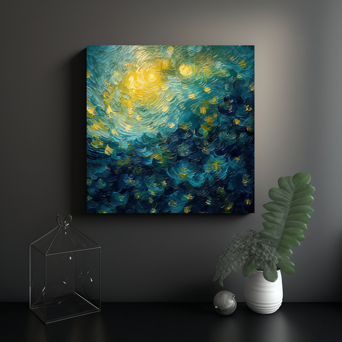 Lienzo Colores Minimalismo: Abstracción De La Noche Estrellada De Van Gogh.
