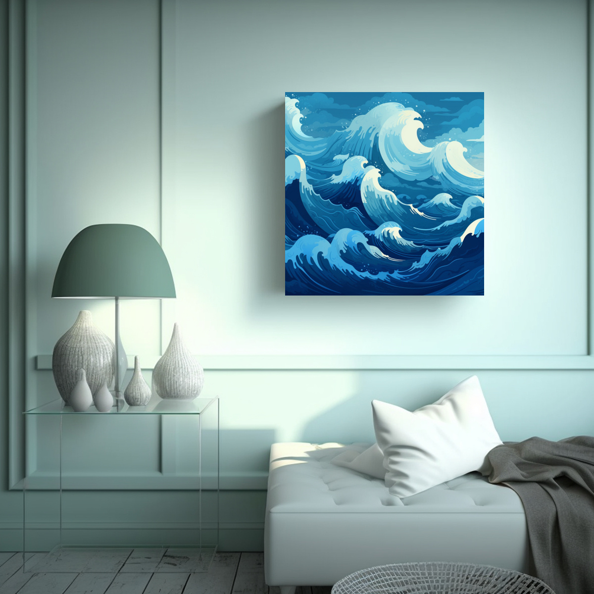 Este cuadro se verá espectacular en tu sala de estar, creando un ambiente relajante y moderno Combínalo con muebles en tonos neutros como blanco o gris, y agrega algunos detalles en verde azulado para resaltar los colores del cuadro Colócalo en una pared amplia y despejada para que sea el centro de atención de la habitación
